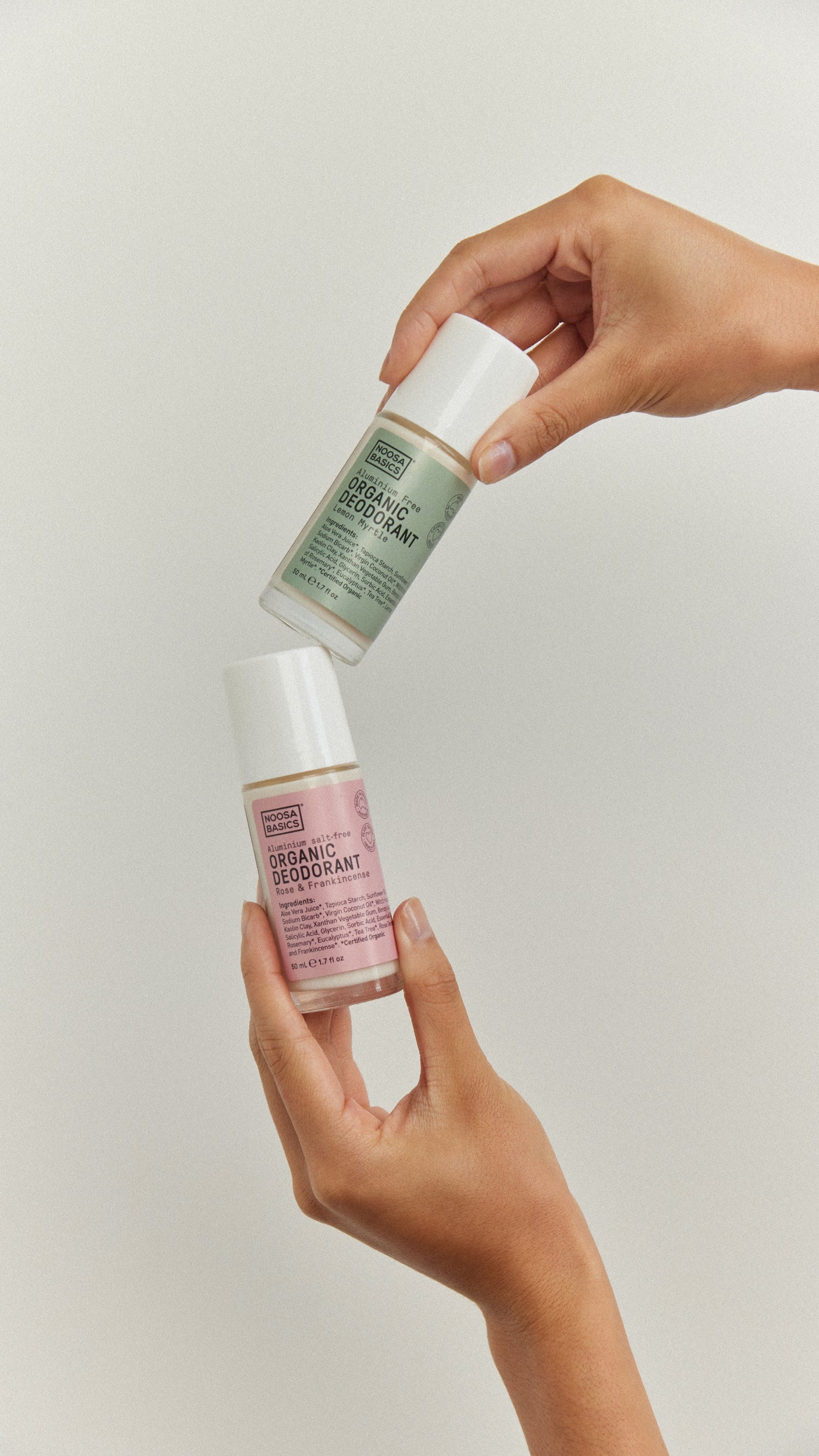 Lífrænn svitalyktareyðir frá Noosa Basics, náttúruleg formúla sem virkar. Handunnin vikulega í litlum lotum í Noosa í Ástralíu til að tryggja ferskleika. Þessi svitalyktareyðir dregur úr lykt samstundis og dregur í sig raka, sem heldur þér ferskri allan daginn án áls, parabena eða annara óæskilegra aukefna.